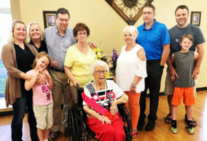 Mary Benson was honored at her 103rd birthday party on July 20 at Continuing Healthcare of Lisbon. She was born on July 22, 1915. Pictured with the birthday girl is her family that came to celebrate, first row, from left, Reese Hissam, Linda Beadnell, Mary Benson, Cathy Beadnell, Rosco Hissam; ...