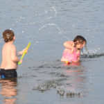 The beach at Guilford Lake State Park has been a popular spot in recent weeks. Twin five-year-olds Patrick and Irelynn Hill enjoyed getting some target practice at each other with their squirt guns while swimming. (Salem News photos by Patti Schaeffer)