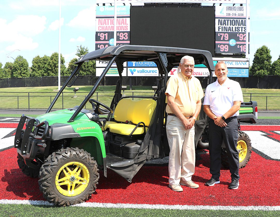 Recently, he donated a state-of-the-art John Deere Gator Utility Vehicle to the football program and another electric one for use by the University that resides in the WATTS. YSU President Jim Tressel can be seen throughout campus driving around on his special YSU-themed machine, which was purchased from Cope.