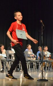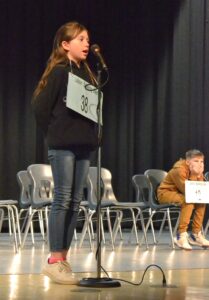The bee featured 40 spellers from grades 5-8 and started with a practice round, followed by eleven official rounds. Words gradually became harder in each subsequent round, starting with words such as “sudsy,” “bronze” and “putty.”