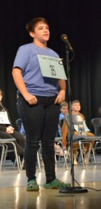 Eighth-grader Reagan Smith correctly spells a word in an early round of the Lisbon Spelling Bee Friday. Forty students in grades 5-8 participated in the competition to see which three students will represent Lisbon in the Columbiana County Spelling Bee on March 2 at Beaver Local High School. (Photo by Evan Houk)