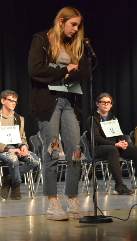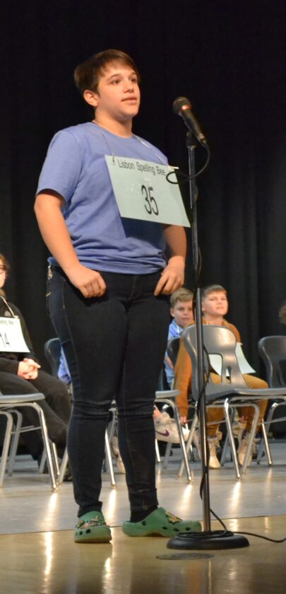 - Eighth-grader Reagan Smith correctly spells a word in an early round of the Lisbon Spelling Bee Friday. Forty students in grades 5-8 participated in the competition to see which three students will represent Lisbon in the Columbiana County Spelling Bee on March 2 at Beaver Local High School. (Photo by Evan Houk)