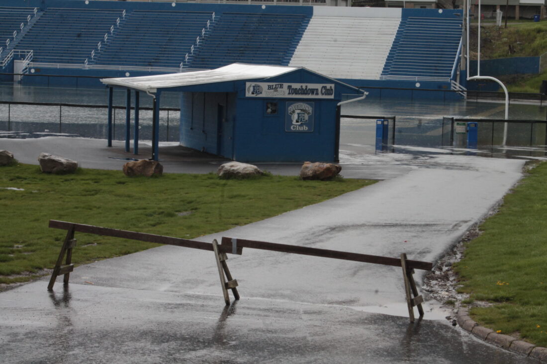 Ludwig said the school district will get a better assessment of what the flooding did to the field on Saturday. He said the district has been in contact with the field turf company to see what will be needed. Ludwig said during the planning process for the field renovations, several flooding scenarios were reviewed by the company and the district.