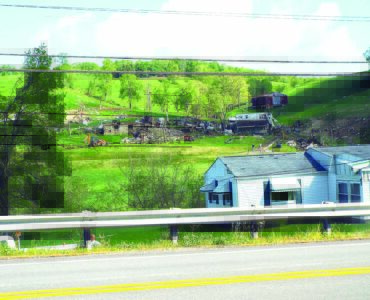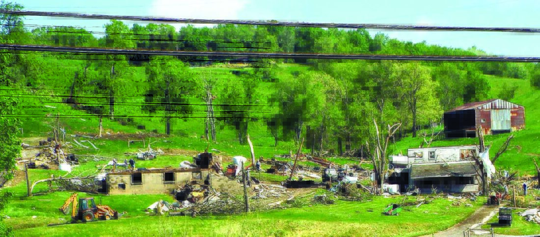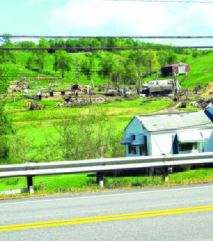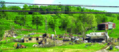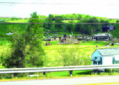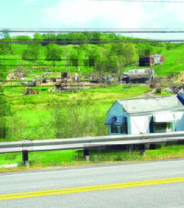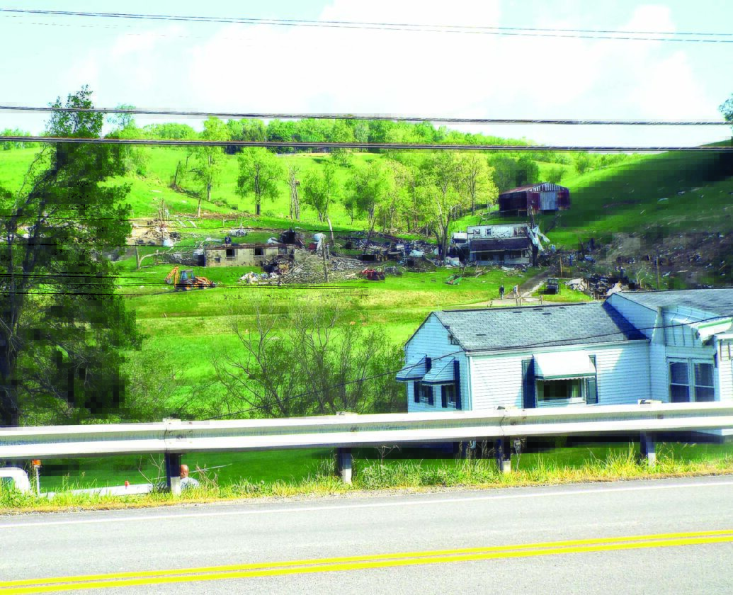 This debris field is basically all that is left behind after a tornado destroyed this farm and adjacent properties in the 100 block of Independence Drive shortly after 1 a.m. Wednesday across from the Valley View Superette on Route 8 in the Fairhaven area of Hancock County. (Photo by Stephanie Ujhelyi)