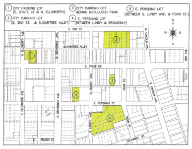 With work on a project which will repave State Street and North Lincoln set to begin Monday, and traffic and street parking restrictions set to be implemented during work hours, the city officials have created a pair of maps to help minimize disruption to residents. One map charts the sections of State and Lincoln set to be milled and repaved, while the other highlights the city’s municipal parking lots downtown, which residents can utilize while visiting downtown businesses during work hours. Work on the project is expected to last from roughly 7 a.m. to 6 p.m. Monday, Tuesday and Wednesday weekly for the next 12 to 16 weeks barring weather issue or other unforeseen complications and delays. (Images courtesy Joe Cappuzzello)