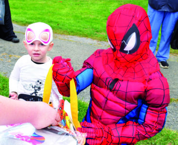 The tenth Trail of Treats attracted hundreds of children Sunday to Waterworth Memorial Park. Community groups and individuals distributed candies and other goodies. The event was created in 2016 by Kim Hoffman of “Eyes for Olivia” with the support of former longtime Salem Parks Director Shane Franks. “Trail of Treats was her idea; she has helped organize it every year,” he said. A costume contest was held prior to Trail of Treats. Kelli Pastore is the current director of the Salem Parks which has overseen the event each year. Winning honors for top presentations were: first place, Salem First Christian Church (Chick-fil-A); second place, Columbiana County Prosecutor’s Office (Happy Gilmore golf theme); and, third place, DT Moore and Associates (Minecraft theme). Photos of those providing treats will be published later this week. Shown above, John Tonti, left, and Geoff Goll of the Salem Community Foundation helped children select a free book. Youngsters shown are 11-year-olds Paytin Burns, left, and Blake Stone. Photos by J.D. Creer)