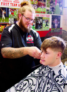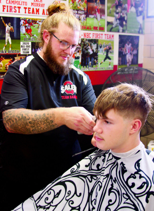 Andrew Irwin, the owner of Courtyard Cuts at 657 E State St. inside Courtyard Square, is no stranger to Salem High School’s football program as a 2017 alum. Irwin also knows the level of skill, discipline and effort it takes for a team to reach the playoffs, having been a member of the Quakers during their 2015 playoff run. Ten years later Irwin returned to the high school after practice Thursday to offer free haircuts to any member of the team who wanted one ahead of their opening round playoff game against the Northwest High School Indians tonight at 7 p.m.