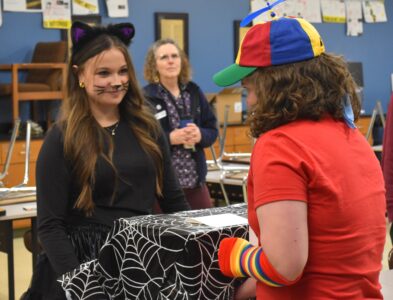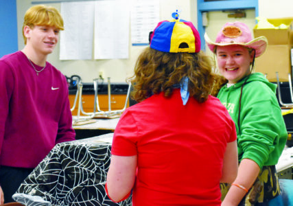 CCCTC Criminology student Aubrey Stewart of Beaver Local tries to get Koleigh Fodden of Wellsville to guess what’s in the mystery box.