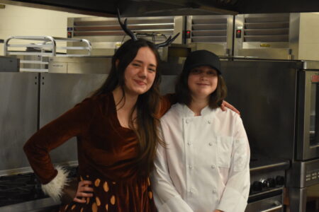 CCCTC Culinary Arts and Salem High School students Clarissa Jones (left) and Claire Kellough stand behind the buffet line.