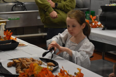 Mila Dawson (7) of East Liverpool grabs a sweet treat.