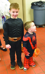 Leo (5) and Glenn Dawson (2) of East Liverpool dressed as Batman and Spiderman, respectively.