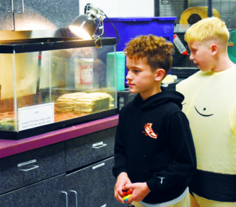 - Columbiana’s Camden McAndrew (left) and Coly Scheks check at the small animals in the CCCTC Veterinary Tech lab.