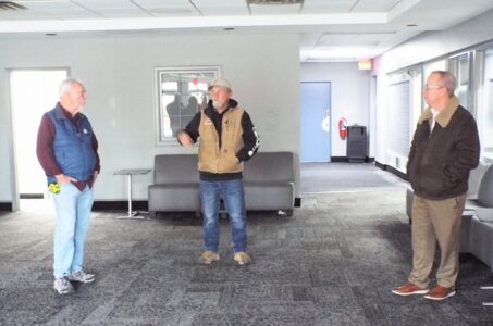 - Columbiana service director Jesse Wilson explains to council president “Skip” Liston, left, and city manager Lance Willard, right, that he thinks the electrical system of the former dealership will need the most attention as it is reconfigured into the new Columbiana city building. (Photo by Stephanie Ujhelyi)