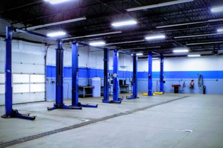 Columbiana service director Jesse Wilson, who was hired recently to oversee special projects like reconfiguring a former car dealership into the city’s new municipal building, stands within a service area. The previous occupants left behind a variety of equipment, such as jacks, office furniture and electric service stations while exiting the sold property last month. (Photo by Stephanie Ujhelyi)