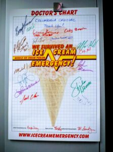 - This promotional paper remained hanging on a back cupboard in one office area, featuring many signatures of past employees in 21 E. Railroad St. visible for city officials who toured the recently reacquired building, which will be the future Columbiana City hall. (Photo by Stephanie Ujhelyi)