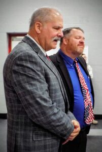 - Columbiana Middle School administrators welcomed veterans and their families to Friday morning’s breakfast prior to a joint Veterans Day assembly in the auditorium. Pictured are assistant principal Rich Cyrus and principal Jason Martin. (Photo by Stephanie Ujhelyi)