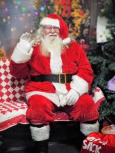 - Santa shares a wave from his selfie area Friday afternoon at Woolf Farms during the business’ participation in a community shopping tour for the Hanoverton-New Garden area. The Country Road Tour includes over 10 participating businesses, with special hours on Black Friday and Small Business Saturday. (Photo by Stephanie Ujhelyi)