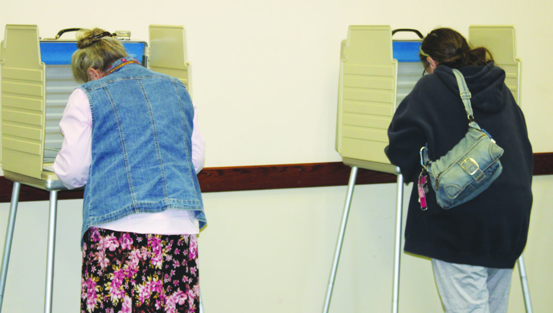Poll workers said that Tuesday’s general election had a light but consistent turnout in Salem and Perry Township, with voters trickling in throughout the morning and early afternoon. Shown are voters from Salem’s second ward performing their civic duty. (Photo by Morgan Ahart)