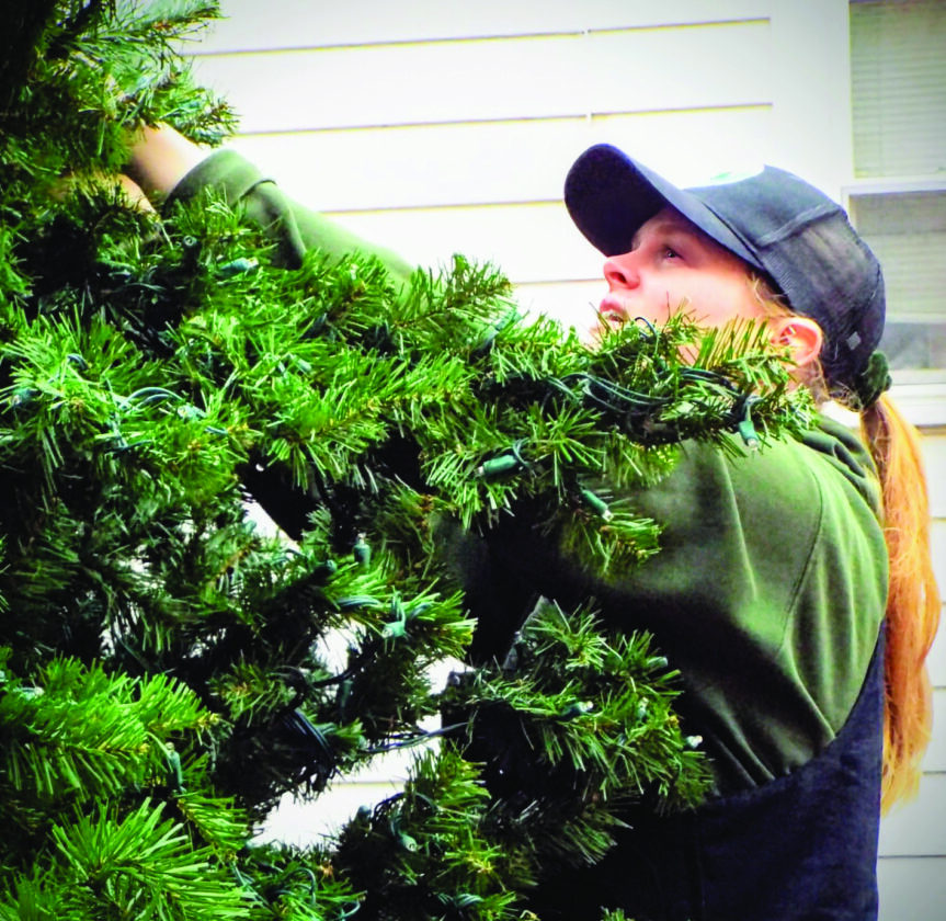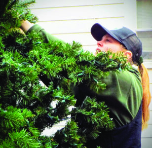 - Leetonia’s administrative assistant to the mayor Hailey Taylor decorates the village’s Pocket Park tree in preparation for Saturday’s Light Up Night festivities. (Photo by Stephanie Ujhelyi)