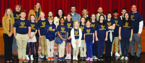 Following their presentations the members of St. Paul’s Civics Club presented the elected officials with certificates of appreciation and replicas of the Constitution signed by all the club members. Shown from left are Ohio Seventh District Court of Appeals Judge Katie Dickey, Lacey Lindesmith, Austin Lindesmith, Mahoning County Court Judge Molly Johnson, Rosemary Dellamaggiora, Columbiana County Prosecutor Vito Abruzzino, Ohio Representative Monica Robb Blasdel, Lillian Rickard, Ohio Senator Al Cutrona, Aadi Patel. (Photo by Morgan Ahart)
