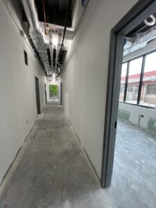 It is early December and the construction employees are kept warm with large heaters and the sun shining through the many brand new windows that will provide students and staff with views of the outside.