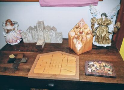 She has nativity puzzles, nativities from foreign lands, homemade wall hangings, collectibles from creators like Hummel as well as both hers and the church’s original Nativity sets.