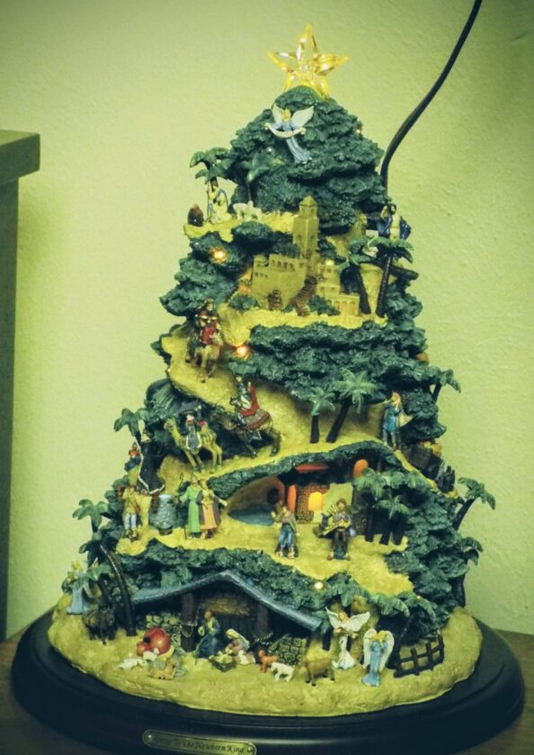 - Yet another nativity set gifted to Pastor Kari Lankford of St. Paul’s Lutheran Church from her mom. This one in the form of a tree. Lankford acknowledges she has to show up about early during the Christmas season to turn on her power-generated sets and make sure they have fresh batteries. She has 350-plus sets in her nativity set collection. (Photo by Stephanie Ujhelyi)