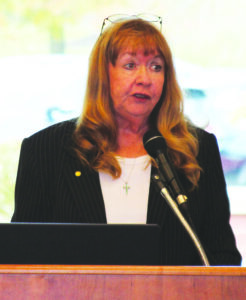 Chamber of Commerce President Shelley Bergman recognized the outgoing members of the Chamber’s Board of Directors and offered the introduction for 2025 Non-Profit of the Year Award recipient the Roc of Salem. (Photo by Morgan Ahart)