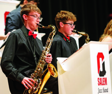 “Pride of Salem Marching Band” students performed Dec. 16 during the 2025 Holiday Band Concert held in the high school auditorium. (Photos by Gary Leininger)