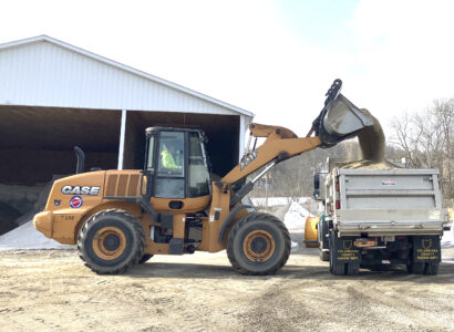 - Ron Sevek of the Columbiana County Engineer’s Office road crew loads a truck with material Friday as crews start preparing for the major snowstorm expected Sunday. The county uses a mix of salt and grit and will have 15 trucks clearing roads starting in the early hours Sunday and continuing as the storm progresses. (Photo by Mary Ann Greier)