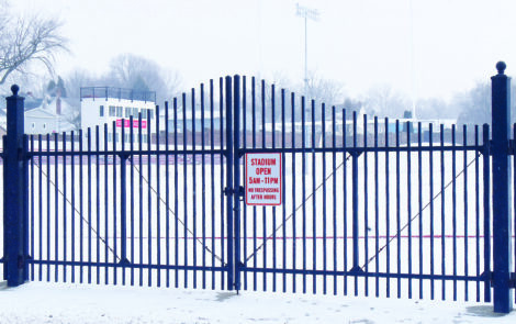 - Snow already blankets the football field at Sebo Stadium in Salem on Friday before the winter storm that is forecast for Sunday. (Photo by Ron Firth)
