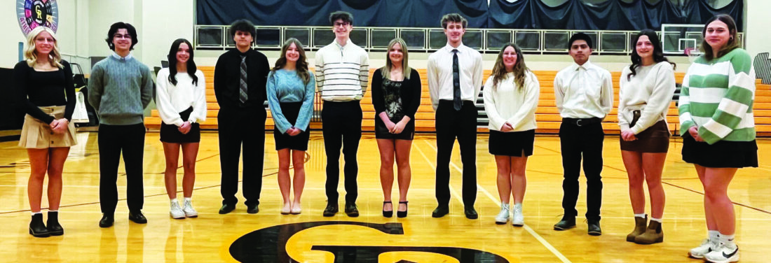 Crestview’s Winter Homecoming will be celebrated between the junior varsity and varsity boys basketball games Friday, with junior varsity starting at 5:30 p.m. Crowning of the king and queen will take place Friday between games, and the dance will be the following evening from 7 to 10 p.m. Students can purchase tickets for the dance at school or at the dance Saturday evening. The court includes, from left, junior attendant Kerrigan Miller, senior King candidate Alex Beveridge, senior Queen candidate Laney Boano, senior King candidate Brody Brubaker, senior Queen candidate Emma Priestly, senior King candidate Braydon Gilbert, senior Queen candidate Breanna Weaver, senior King candidate Tyler Savage, senior Queen candidate Blasey Biser, senior King candidate Johnny DeLaRosaSolana, sophomore attendant Lilly Beaver and freshman attendant Kendra Potts. Not pictured is senior Queen candidate Chloe Rafferty. (Submitted photo)