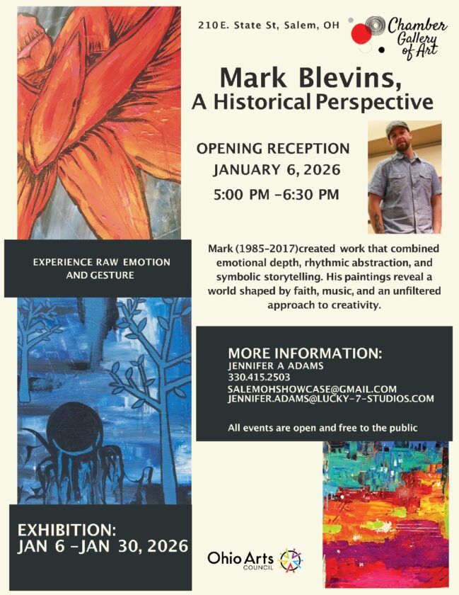 SALEM –The Chamber Gallery of Art is honored to present “Mark Blevins: A Historical Perspective,” a retrospective exhibition celebrating the artistic legacy of Mark Blevins (1985-2017).