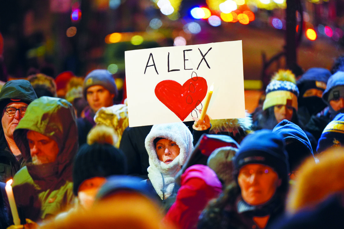 An attendee holds a sign during a vigil where Alex Pretti was shot and killed by federal immigration enforcement in Minneapolis, on Wednesday, Jan. 28, 2026. (AP Photo/Adam Gray)