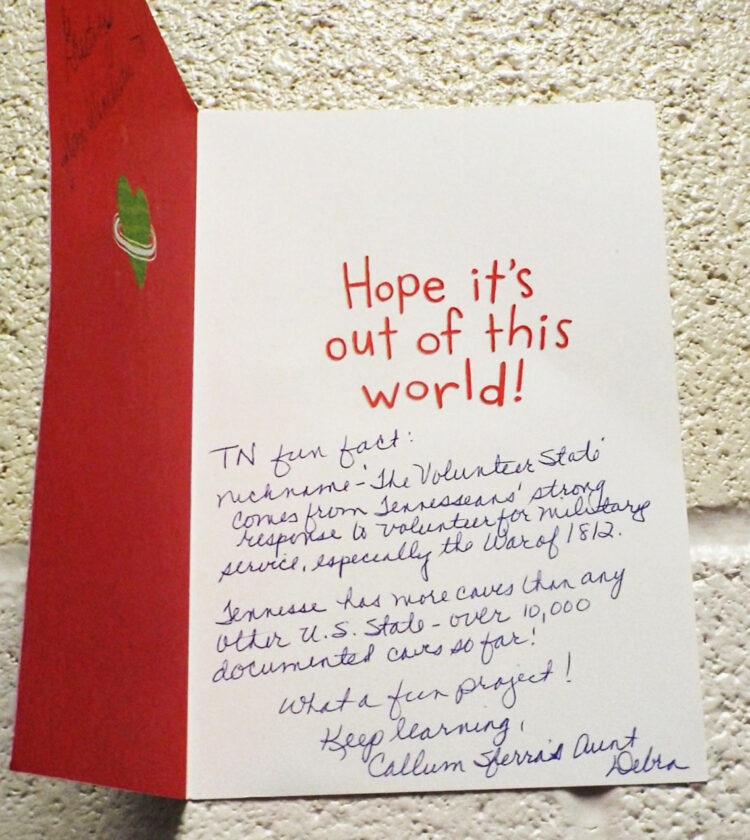 Callum Sferra’s aunt Debra sent this Valentine from Tennessee and used the opportunity to share why Tennessee is called the Volunteer State, focusing their willingness to step by for military service - particularly with the War of 1812. (Photo by Stephanie Ujhelyi)