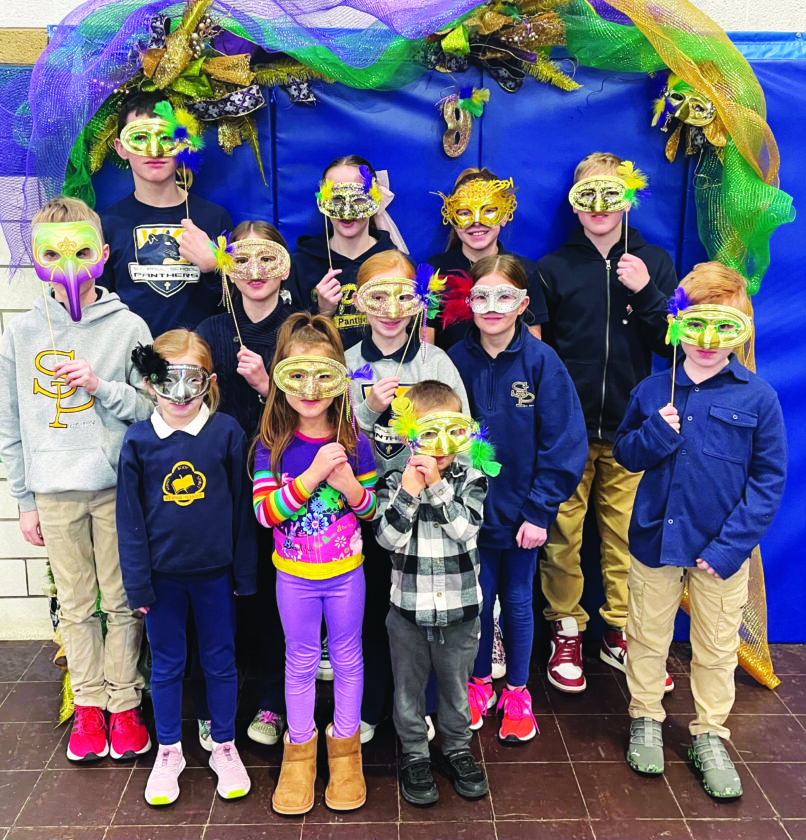 The St. Paul School Foundation is teaming up with the Rumpled Queen to bring Mardi Gras to Salem Feb. 17 for a fundraiser benefiting the staff and students of St. Paul Elementary. Shown from left, from row, Sadie Bahr, Mila Tait, Oakley Meyers; middle row, Bobbie Kotel, Stella Rea, Jean Bahr, Khloe Santee, Maxwell Bahr; back row, David Prosko, Abigail Kotel, Lacey Lindesmith and Austin Lindesmith. (Submitted photo courtesy Rhonda Rea)