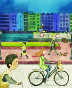 Chelsea Fraser, a Salem native who writes under the pseudonym Chelsea Lena, released her debut children’s book “My Amsterdam Day” in July. Shown is an illustration from the book by Brazilian children’s illustrator Hugo Duarte. (Submitted photo)