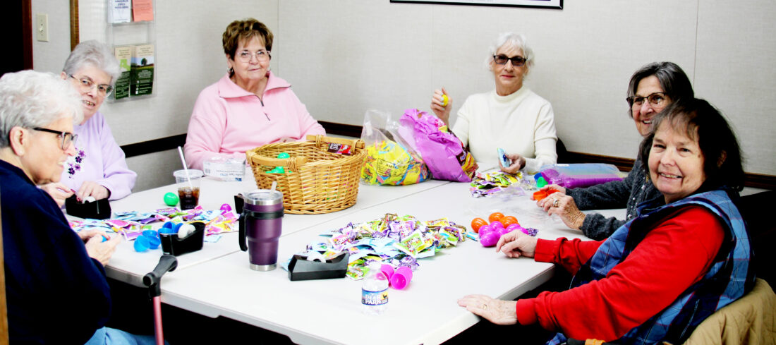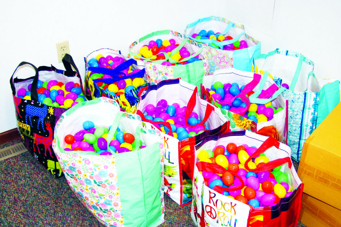Even before beginning work Tuesday, the volunteers had already prepared thousands of eggs for the upcoming Easter egg hunt. (Photo by Morgan Ahart)