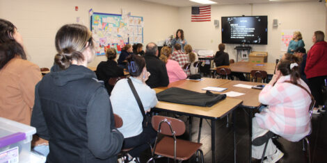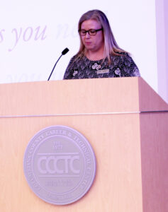 CCCTC English teacher Elizabeth Wright speaks to potential students and their parents about the academics offered in addition to career training for students who opt to attend CCCTC full day. (Photo by Kristi R. Garabrandt)