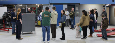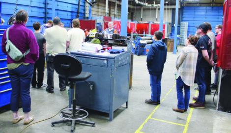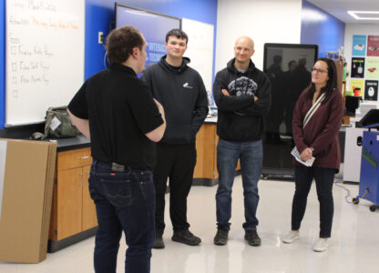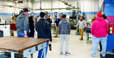 Precision machining and manufacturing (PMM) instructor Michael Hughes talks with parents and students about what they can expect from the course if they are accepted into it. (Photo by Kristi R. Garabrandt)