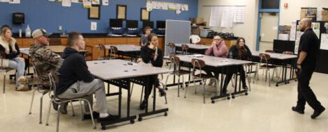 Damin Beadnell, criminal justice instructor, answers questions from parent and students regarding criminal justice career training. (Photo by Kristi R. Garabrandt)
