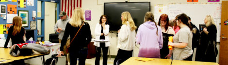 Pam Dawson, RPN and Health Academy instructor, speaks with students interested in enrolling in the Health Academy at CCCTC. (Photo by Kristi R. Garabrandt)