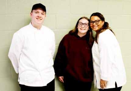 - Peyton Mellott, senior, Crestview Local Schools, (left) and Meadow Anderson, senior, Salem High School, (right), both culinary students at CCCTC talk with Hadleigh Taylor, sophomore, United Local Schools (center), about her interest in the culinary program. (Photo by Kristi R. Garabrandt)