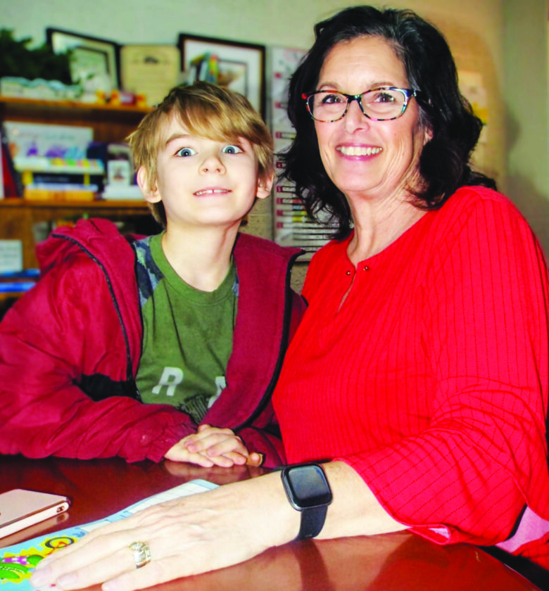 - Joshua Dixon Elementary School third-grade student Alex Kachelries drops by his principal Dr. Kim Sharshan’s office to pick up yet another sticker for an incentive earned at week’s end upon completion from her treasure chest. (Photo by Stephanie Ujhelyi)