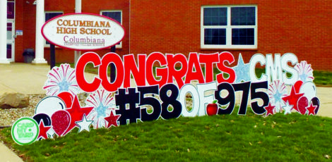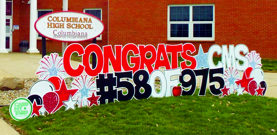 - This CardMyYard sign greeted individuals attending Friday morning’s celebratory assembly for Columbiana Middle School outside the high school, where grades 4 through 8 gathered in the gymnasium for the festivities with various city, state and federal officials. (Photo by Stephanie Ujhelyi)