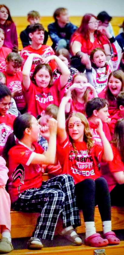 Students in the fifth-grade section of the Columbiana gymnasium stands do the arm movements as the Village People’s YMCA plays before Friday’s assembly. Among those pictured in no particular order, clockwise from front right, are Kaylee Pizzedaz, Delanie Gordon, May Oraze and Scarlett Nanosky. The assembly celebrated Columbiana Middle School’s latest achievement as being named among U.S. News and State Report magazine’s top middle schools in the state of Ohio. In addition to staff and students from the middle school attending, the event also included plenty of local, state and federal dignitaries. (Photo by Stephanie Ujhelyi)