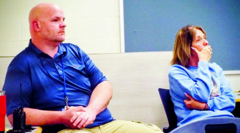 Leetonia school district’s Dan Favazzo, the director of transportation, sits next to district bus driver Dawn Tittle Wednesday afternoon during the district’s latest community chat regarding proposed busing changes. (Photo by Stephanie Ujhelyi)