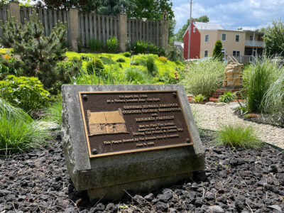 This plaque in Frederick, Md., highlights the 1755 meeting between Gen. George Braddock, then-Col. George Washington and Benjamin Franklin sits near the spot in Frederick where they met to discuss plans to attack Fort Duquesne at Pittsburgh. (Photo courtesy of Visit Frederick)