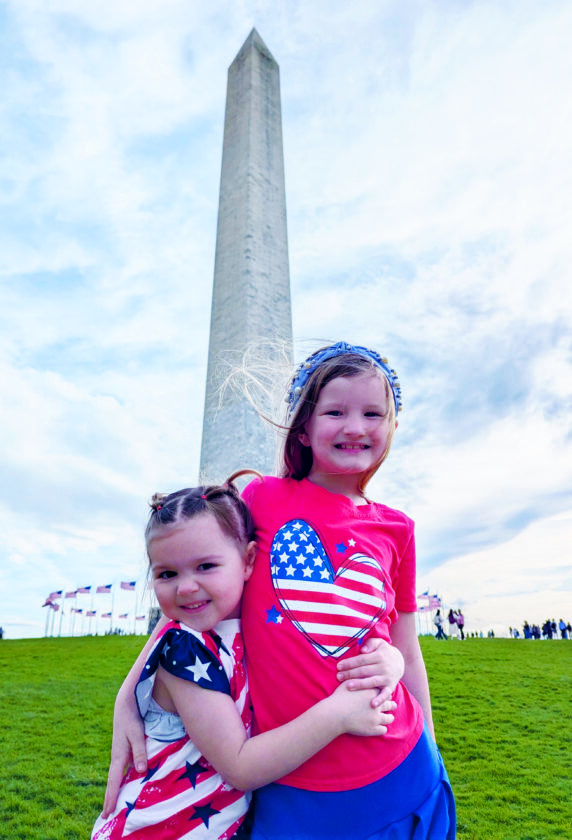 The Johnston sisters, Cora, left, and Paisley, wore their red, white and blue during a visit to the Washington Monument as part of their recent White House Easter Egg Roll trip. They hail from East Palestine. (Photo courtesy of Traci Ketchum)
