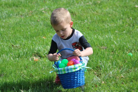 Graham Schwingle, 4, Salem, searches for Easter eggs. (Photo by Morgan Ahart)